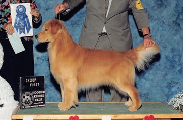 Presley was a once-in-a-lifetime golden. By age two, he had already achieved titles in conformation, obedience, and field work — something almost unheard of in the breed. A Champion, Master Hunter, and Outstanding Sire, Presley proved that a golden could be both beautiful and brilliant. He produced over 30 champion offspring and left a lasting impact on the breed with his loyal temperament, excellent structure, and true golden spirit.